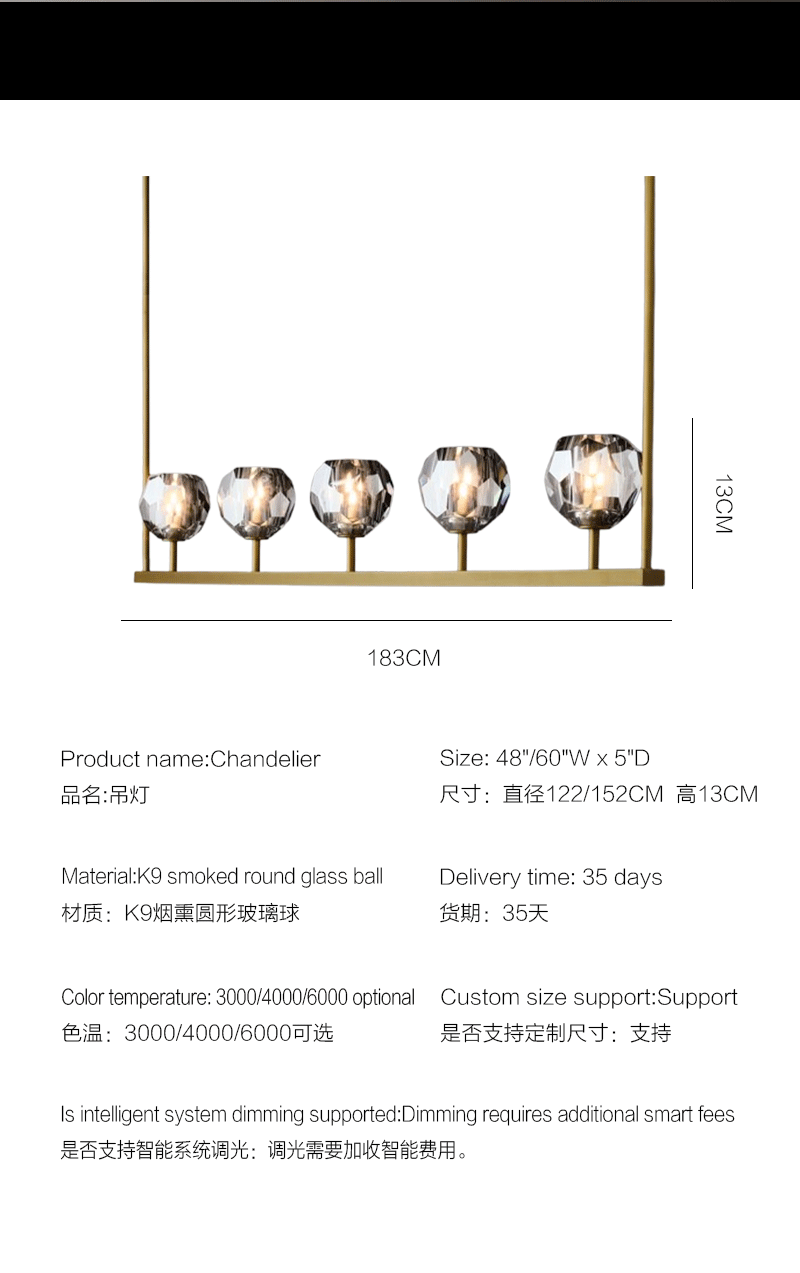 美式轻奢客厅餐厅烟熏玻璃吊灯