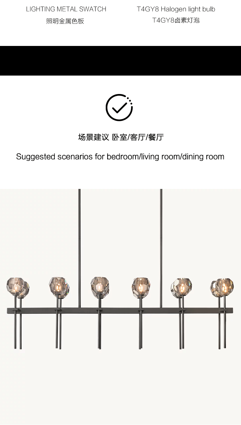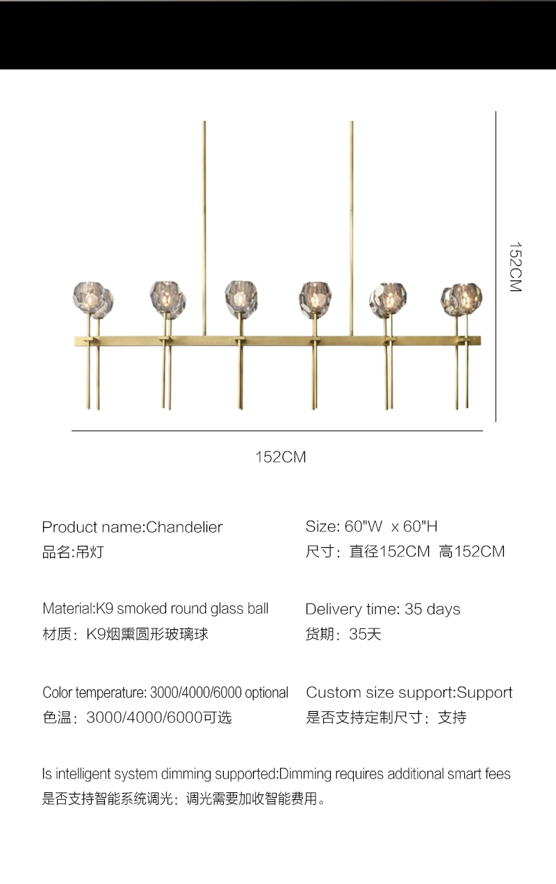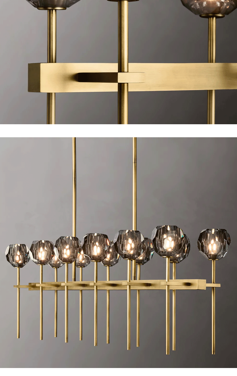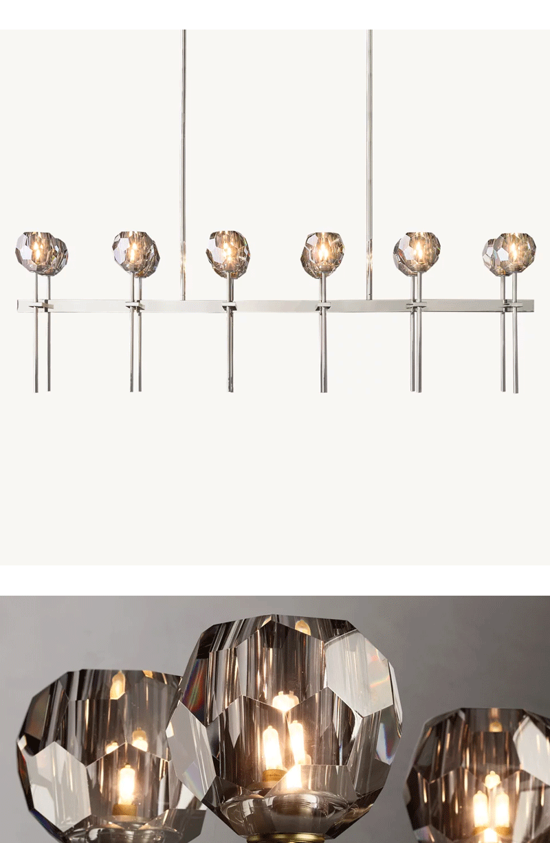 美式轻奢客厅餐厅双线性烟熏玻璃吊灯